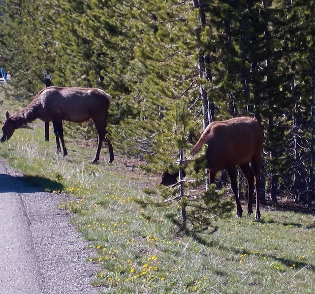 On the way back to our campground we had to wait for a herd of elk to cross the road.